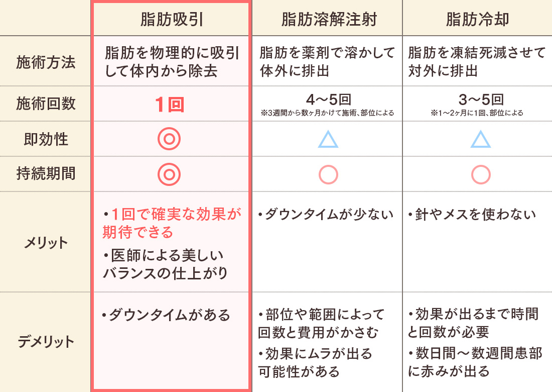 - 痛みや腫れを最小限に抑え脂肪をしっかり除去!